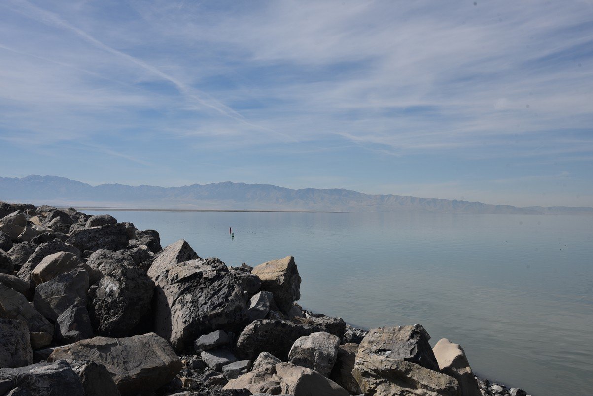 22 photo panorama, 360 degrees - Great Salt Lake (from State Marina parking lot) -