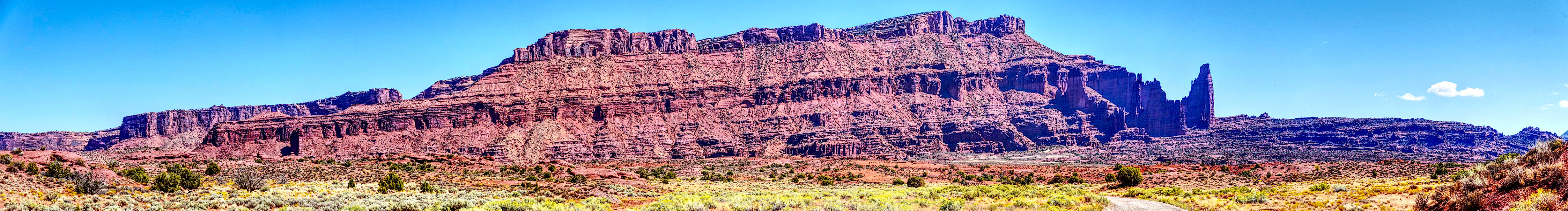 8 photo panorama - Fisher Towers - South of Dewey - Utah Highway 128 -