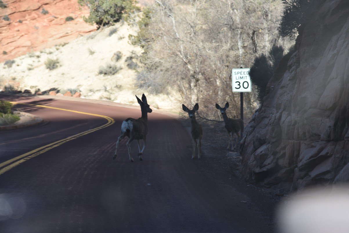 Zion National Park - deer in the road. We both were startled
