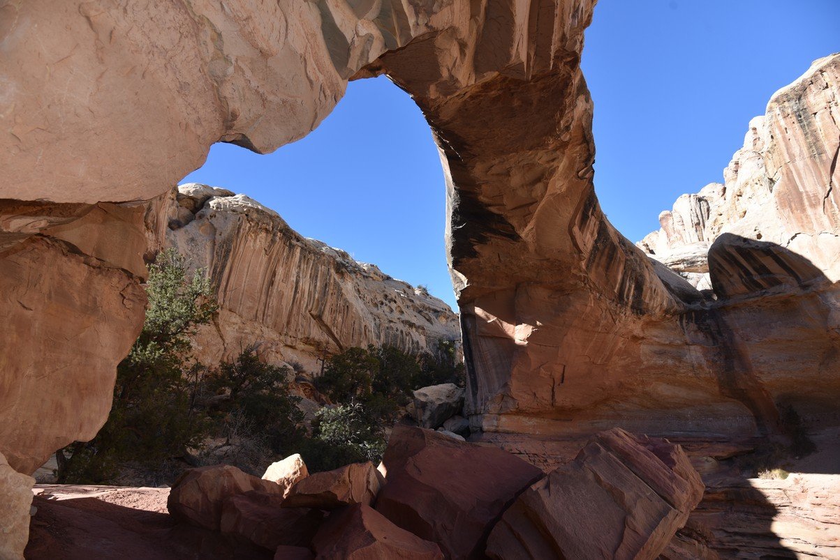 Hickman Natural Bridge in Capitol Reef National Park. It is about 120 feet by 130 feet.