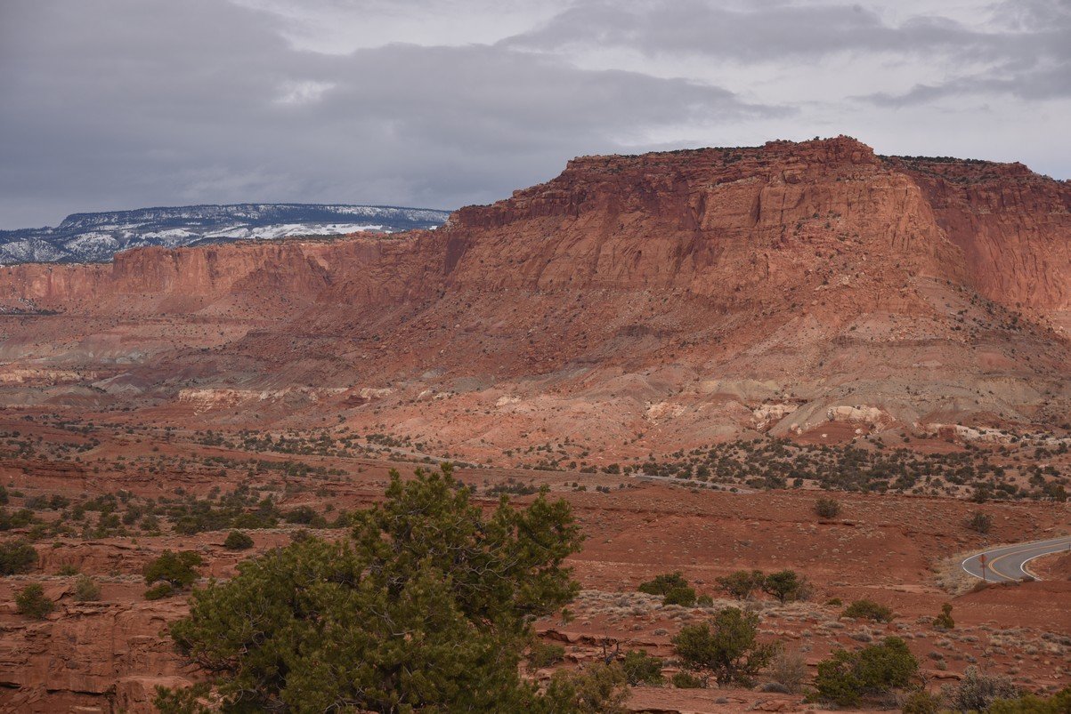 3 of 7 photo panorama in Capitol Reef NP just north of Highway 24 at Chimney Rock.