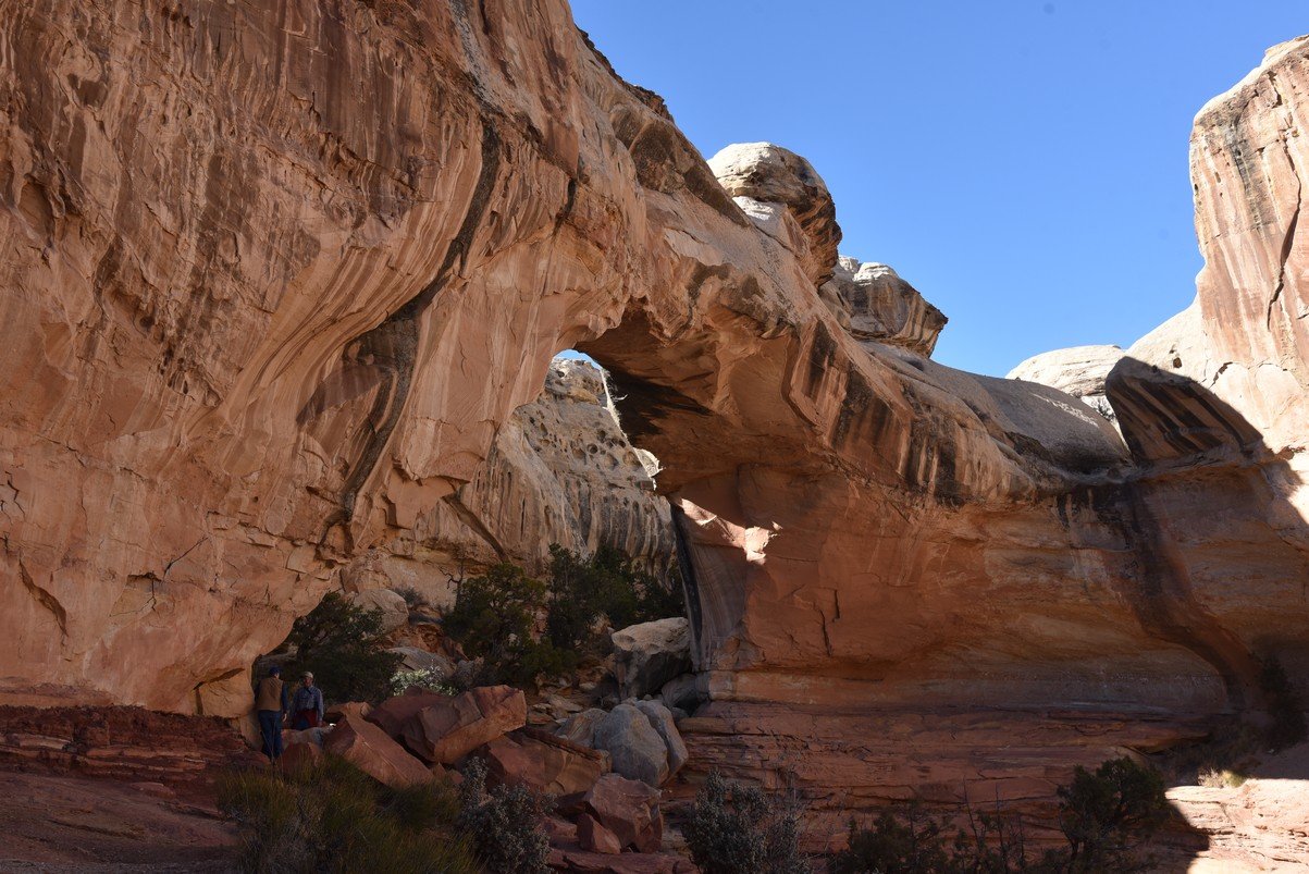 Hickman Natural Bridge in Capitol Reef National Park. It is about 120 feet by 130 feet. There are some people on the left side to give you some scale.