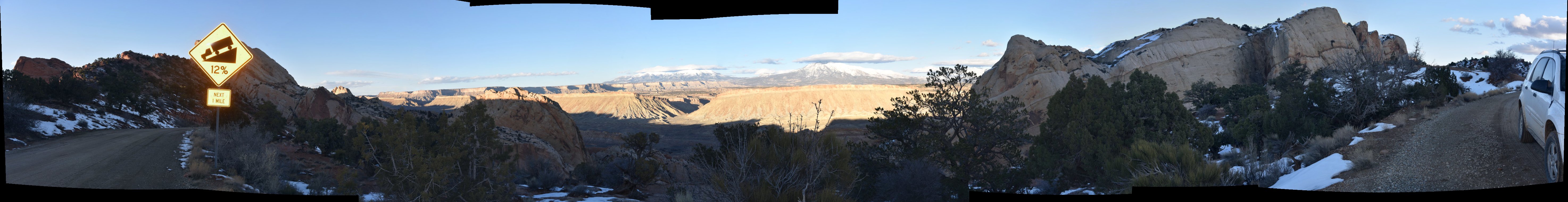6 photo panorama of The Burr Trail Switrchbacks in Capitol Reef National Park. Modified to show more details and color
