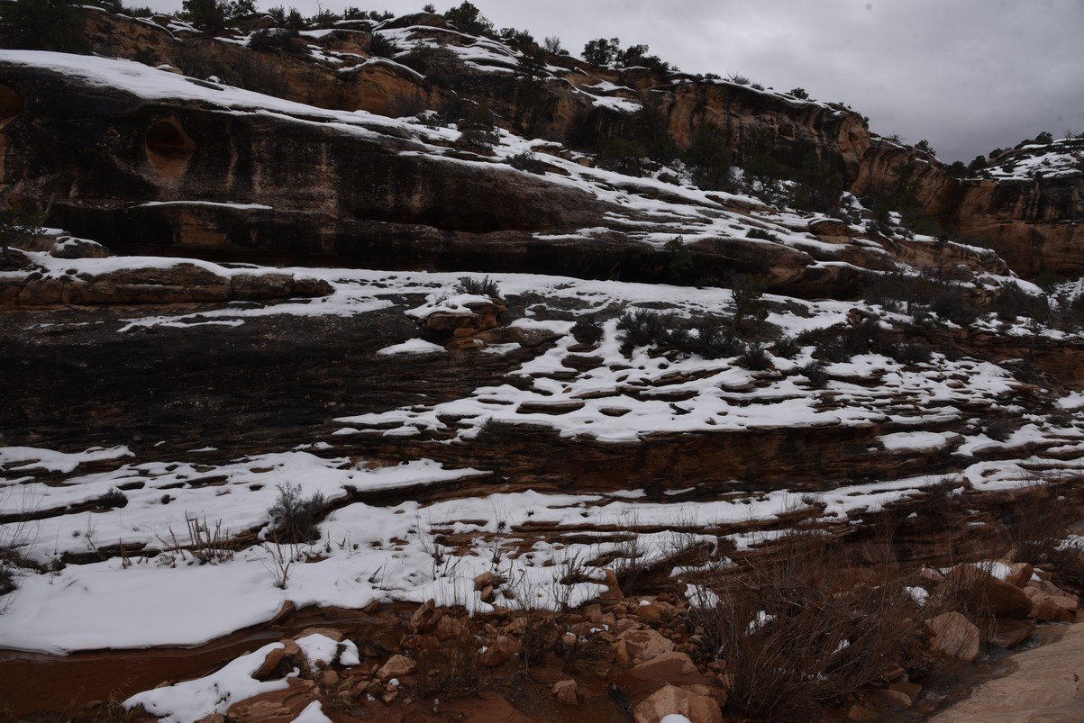 3 of 11 photo panorama - Looking under Owachomo Bridge - 106 feet high and 180 feet wide - Natural Bridges National Monument