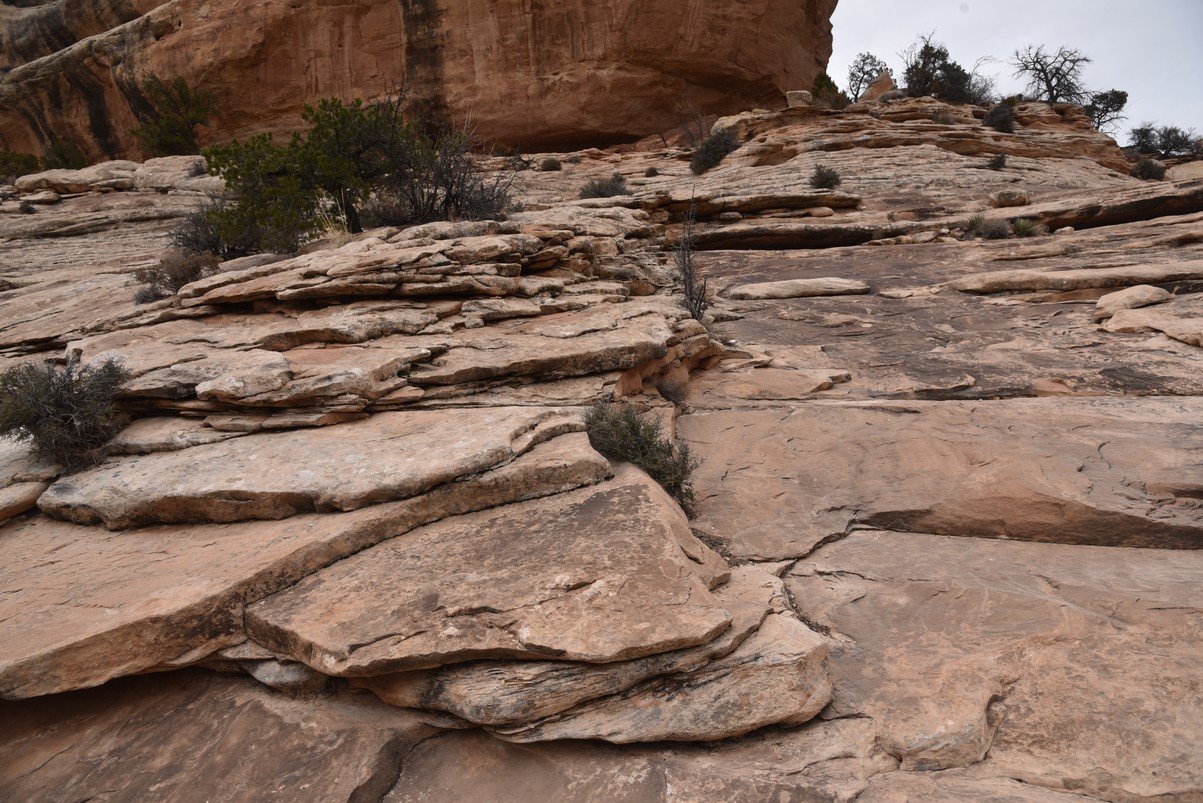 9 of 11 photo panorama - Looking under Owachomo Bridge - 106 feet high and 180 feet wide - Natural Bridges National Monument