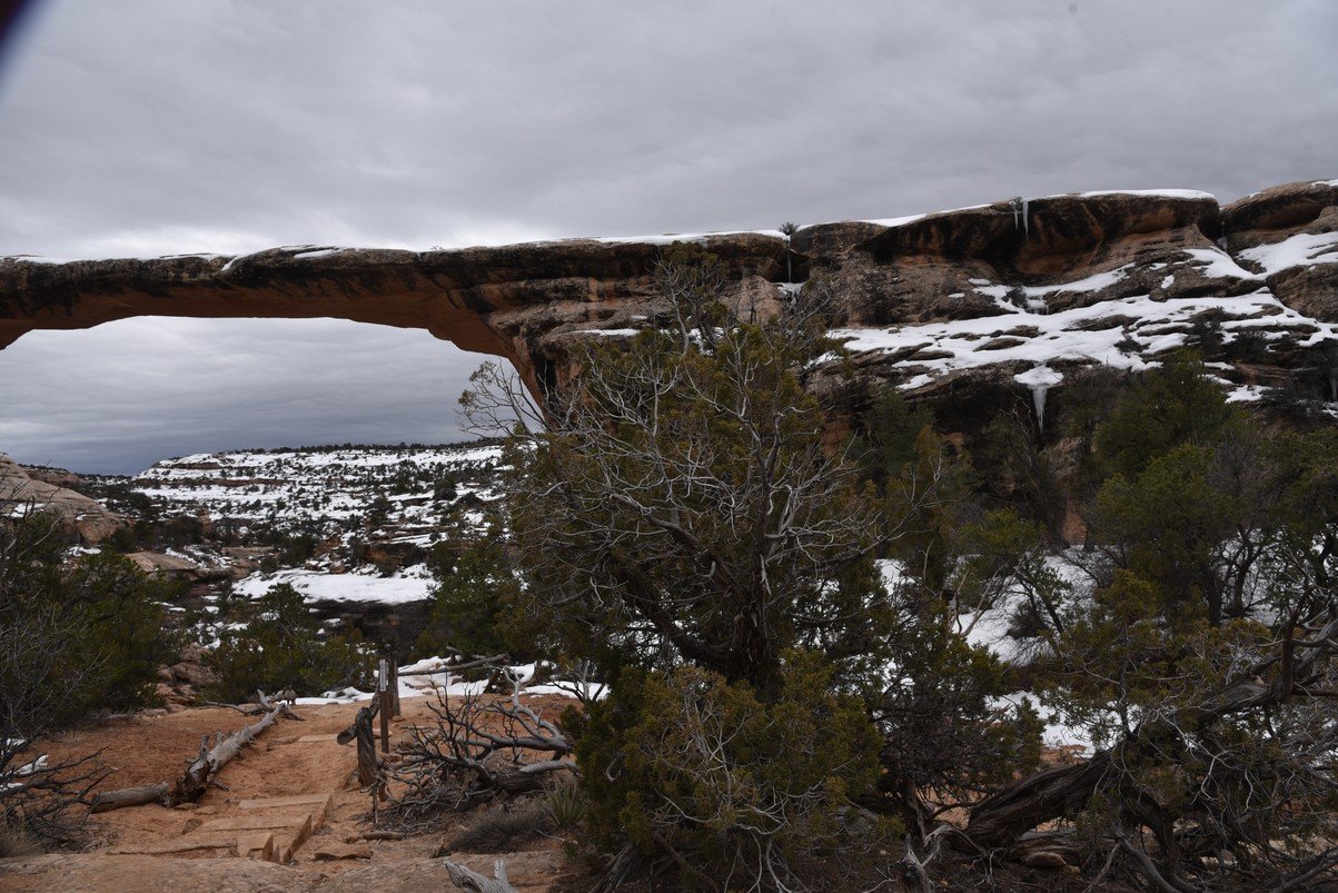 1 of 4 photo panorama - Owachomo Bridge - 106 feet high and 180 feet wide - Natural Bridges National Monument