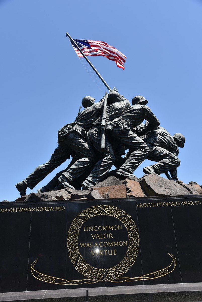 The Marine Corps War Memorial is often called the Iwo Jima Memorial. Technically, it is not in Arlington Cemetery. It is next to it.